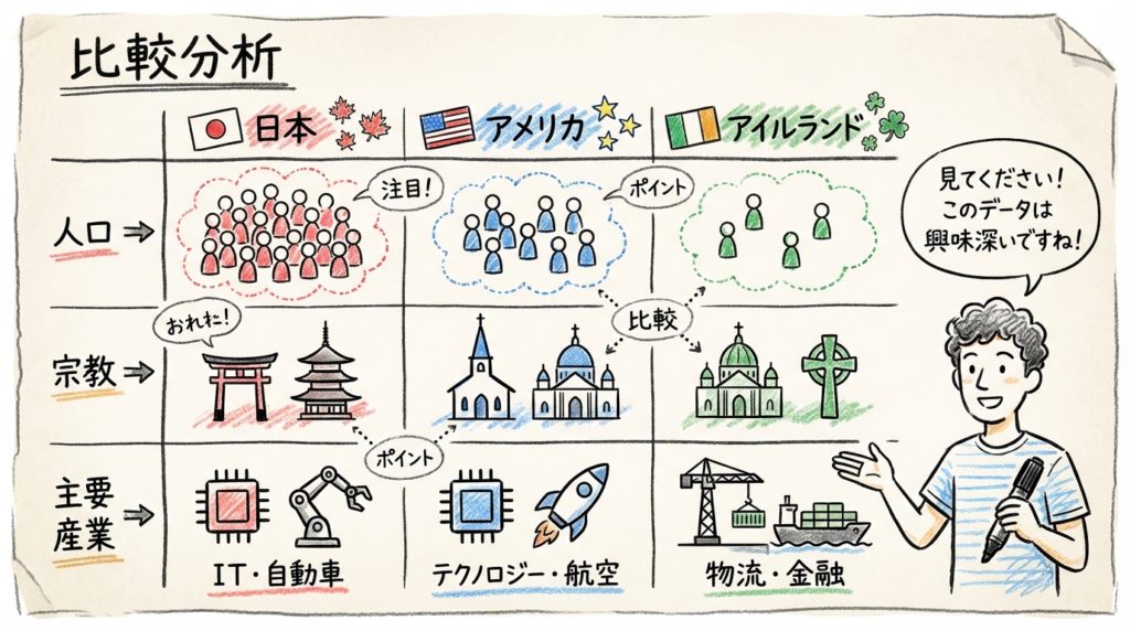以下の表は、三国の基本的なデータを比較したものです。